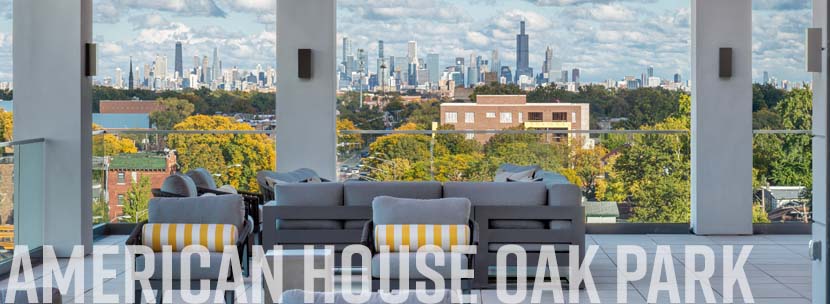 American House Oak Park features many of the same amenities one might find in traditional suburban settings, such as formal and casual dining, fitness center, family room and walking paths. But it also has features communities in the exurbs lack, such as a green roof terrace and rooftop lounge with city views.